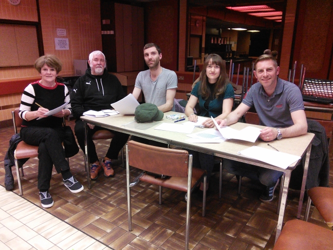 Despite the challenges I am glad we have been able to stage the play in the atmospheric room you can see above. For a while it looked as though building work would move us into the Central Library. I’ve been very lucky to have a talented and supportive small cast of volunteer actors (pictured above) who have taken on what is a quite wordy play full of narration with great aplomb. Their characterisation has been spot on almost from the word go, which has made my job a lot easier. I know them all from Bolton Little Theatre. I was quite nervous about approaching people to take part, so I’ve been grateful for the advice of Sandra Leatherbarrow (far left) and Nathalie Haley for their help with the casting. I’ve deliberately kept the staging modest, three chairs, a table, a spinning wheel. On the day I’ll be running the technical side of the play, cuing the sounds and music, and the slideshow too. I’m definitely going to be relieved when I have this under my belt.